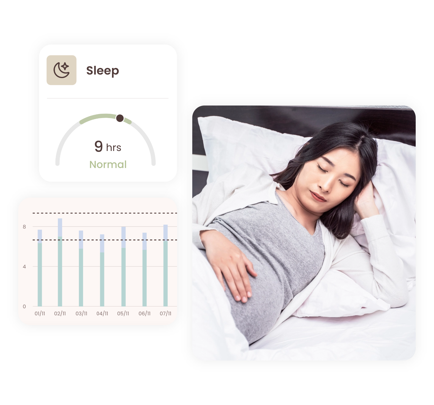Use the app’s sleep insights to prioritize rest for you and your baby.