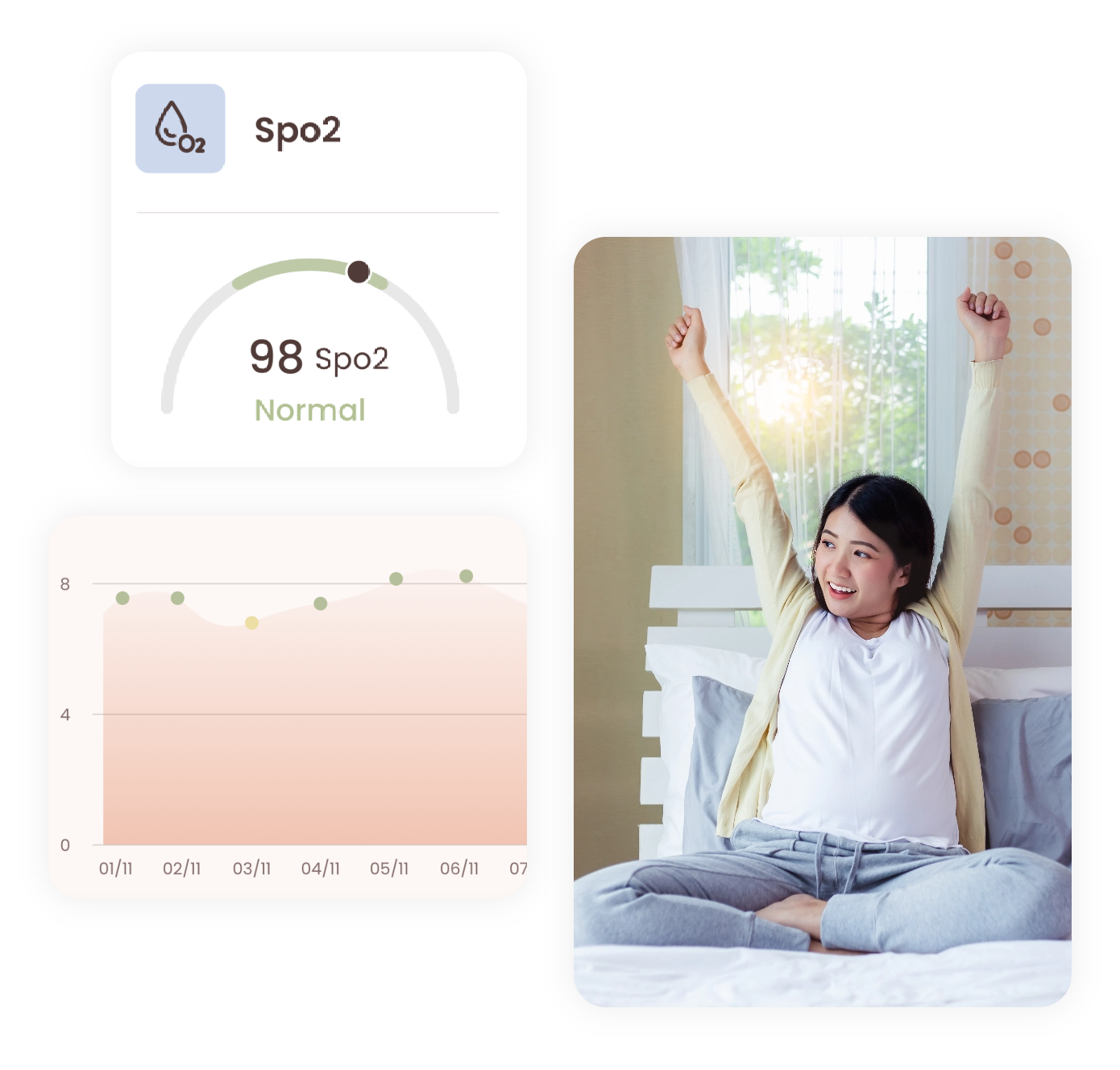 Our smartwatch and app work hand-in-hand to provide the support you need. From real-time vitals on your wrist to tailored AI insights in the app, staying connected to your health has never been easier.