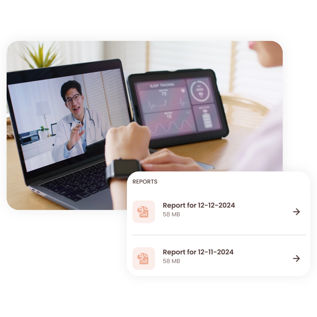 Generate detailed medical reports with a single click and share them directly with your healthcare provider.